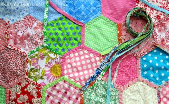 1. I happened upon this technique of 'quilt-as-you-go framed hexagons about 10 years ago, Colleen, though I haven't seen the idea of covering the back seams with fabric/ribbon before. Here's to long-winded bloggers such as you and I....may we never be silent. ;)