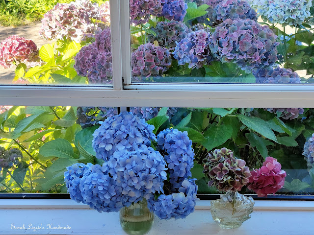 At the moment, here in my humble abode every window has a lovely view. Late summer/early autumn views are so pretty, calming...restful. Views of cosmos, hydrangeas....and far off into the distance forests of trees; and mountains rising up to the heavens. Very soon, the canopy of green will slowly change into glorious autumnal hues; trees standing tall, statuesque with the naked limbs silhouetted against the landscape. Looking through the windows reminds me to be thankful. I can't quite shrug off the feeling of guilt, though. Looking out the window as I stitch, I am thankful for every day I have been given. To cherish every moment; for every day is a miracle is it not?? One never really knows what tomorrow may bring. My heart is both thankful; and filled with sadness at the same time, for all who are facing what seems insurmountable difficulties. Is there ever a time in this thing we call life, when conflicting emotions do not sit side by side and wrestle each other?? I really don't think so.