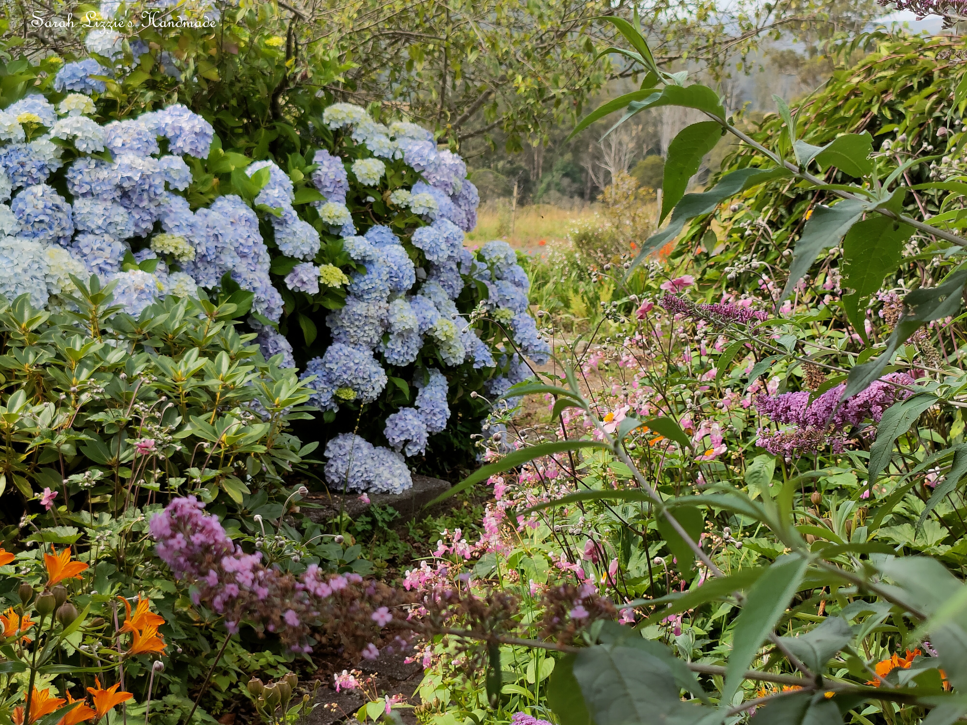 ReplyDeleteDown the Garden Path is so charming. Your creativity never ceases to amaze me. And the blue of your hydrangeas is stunning. We are in for a cold spell for the next 10 days, so seeing your gardens blooming everywhere is a welcome sight.