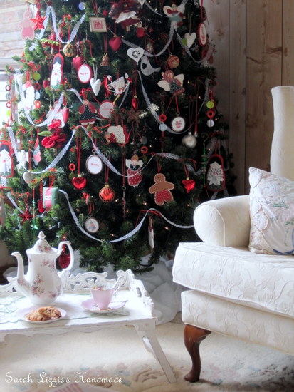 Quite a change from the the heavily decorated, BIG tree. BUT.....I am rather enamoured with my little 'bare' tree.