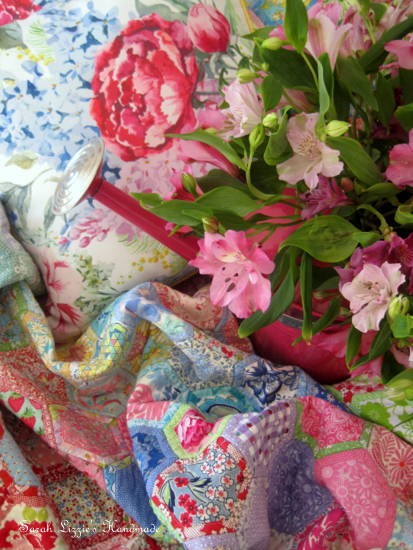 A watering can of Alstromeria and a quilt or two always makes for a pretty still life. =) Alas the pretty Alstromerias are not from my garden but from the green grocers. What can I say, I could not resist buying a bunch or two.