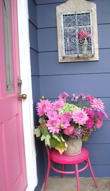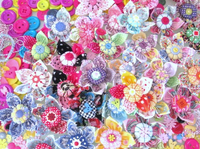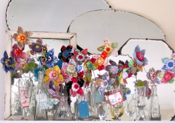 fashioned oodles of  bright and breezy and cheerful fabric flowers........