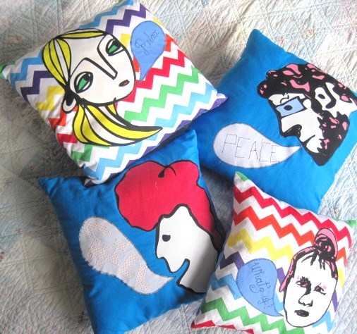 These are just a few of the cushions that were stitched by my child prodigies this week. I think they are so cool and funky!