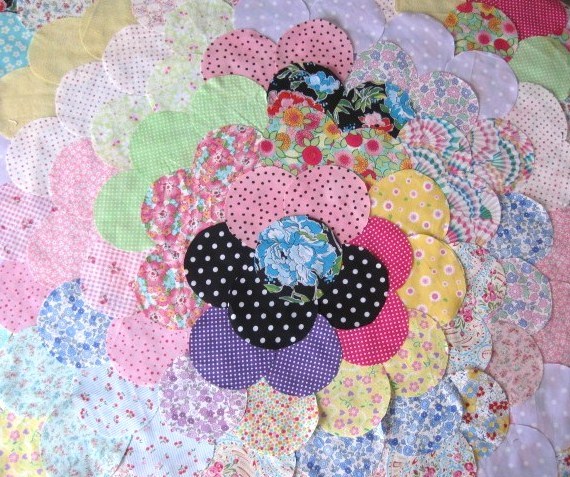 So li'l ole me cut out, folded, stitched, hot glued (both fabric and fingers) 180 or so circles and after many, many seconds, minutes, hours.......