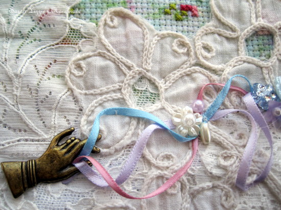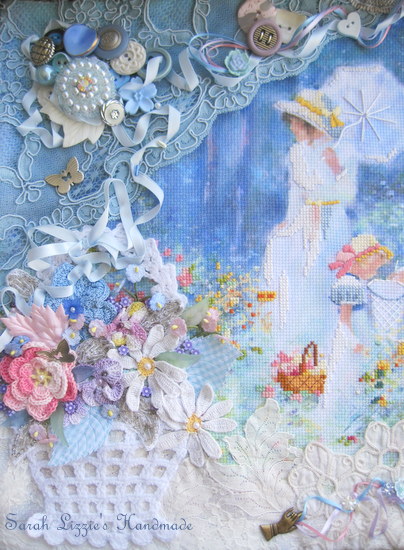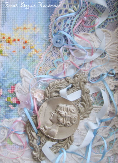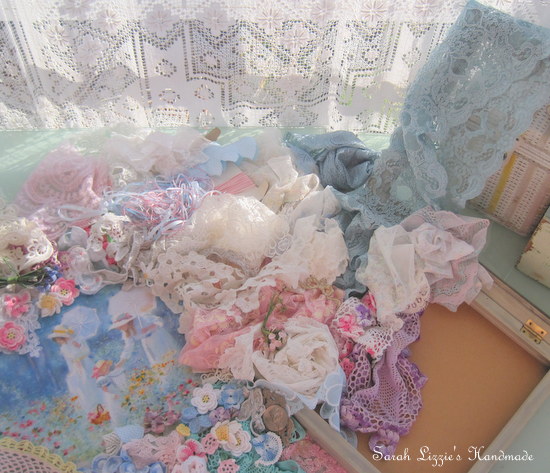 Once again I found myself rummaging amongst my snippets of lace and crochet doilies and all those little bits that would add a little  pizazz when embellishing.