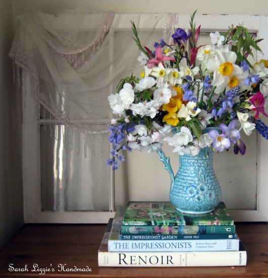 This lovely print brings to mind those paintings of the Impressionist era. The Impressionist era is my favourite period of great art works. I have enjoyed many a bewitching hour strolling through art galleries drinking in works by Monet, Renoir, Manet, Degas and the like. These artists, especially Monet, strike a chord deep within me. In my mind's eye it is easy to visualise Claude Monet painting these ladies plein air in one of his flower-filled meadows in Giverny.