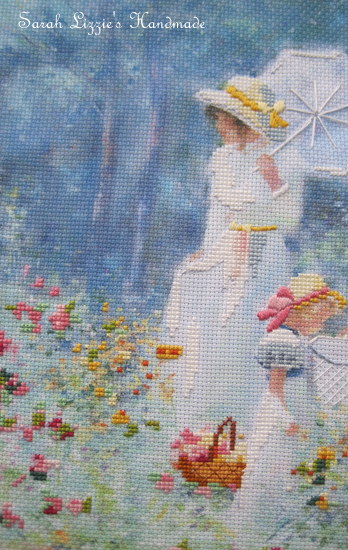 It is a lovely impressionistic-like printed canvas with dainty cross stitches interspersed here and there.