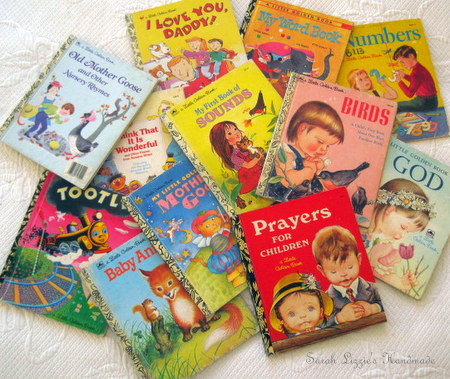 I found these golden books hiding under a shelf. In the school house, of which I wrote about last week, there is a very large pin/notice board in the wee two year old, girl's bedroom. It is fairly ugly with a gazillion pin holes accumulated over years and years. So, I thought I would cover it up by pasting oodles and oodles of colourful pages from these Golden Books. I adore the illustration of the little girl in the sweet hat on the Prayers for Children cover, so, so very cute! I have kept this cover to do something creative with it sometime in the distant future.