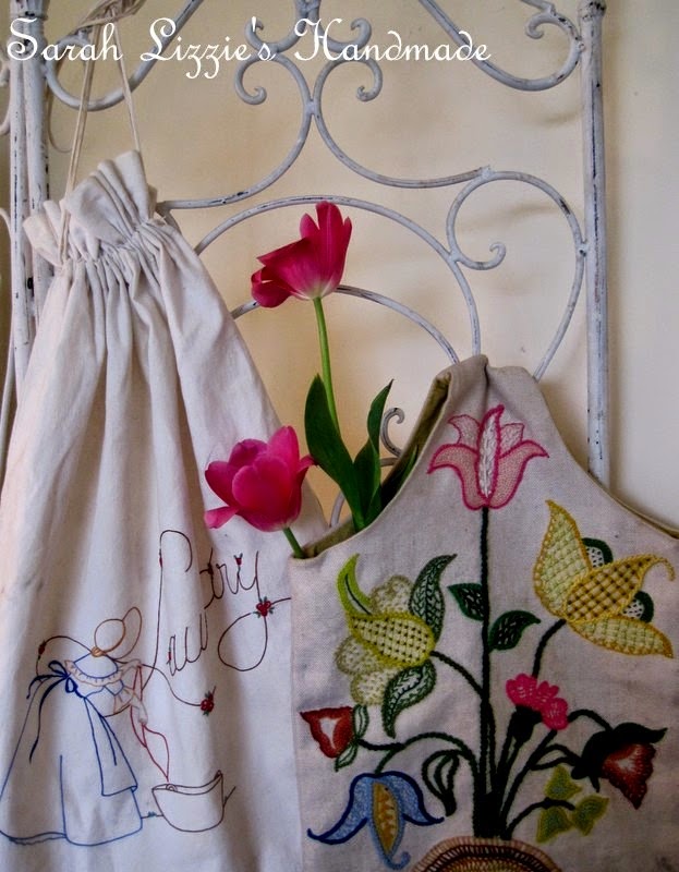 Imagine my surprise when I ever so 'nicely' asked my husband if it would be at all possible to add a lick of white paint on the walls and ceiling and he answered....."of course"!! Wow...such a sweet man. I did search his face for the look of  "what is she dreaming up this time"....but no, nothing but sincerity and genuineness to be seen. This pretty bag with the most gorgeous crewel work was also added to my dowry of cloth.