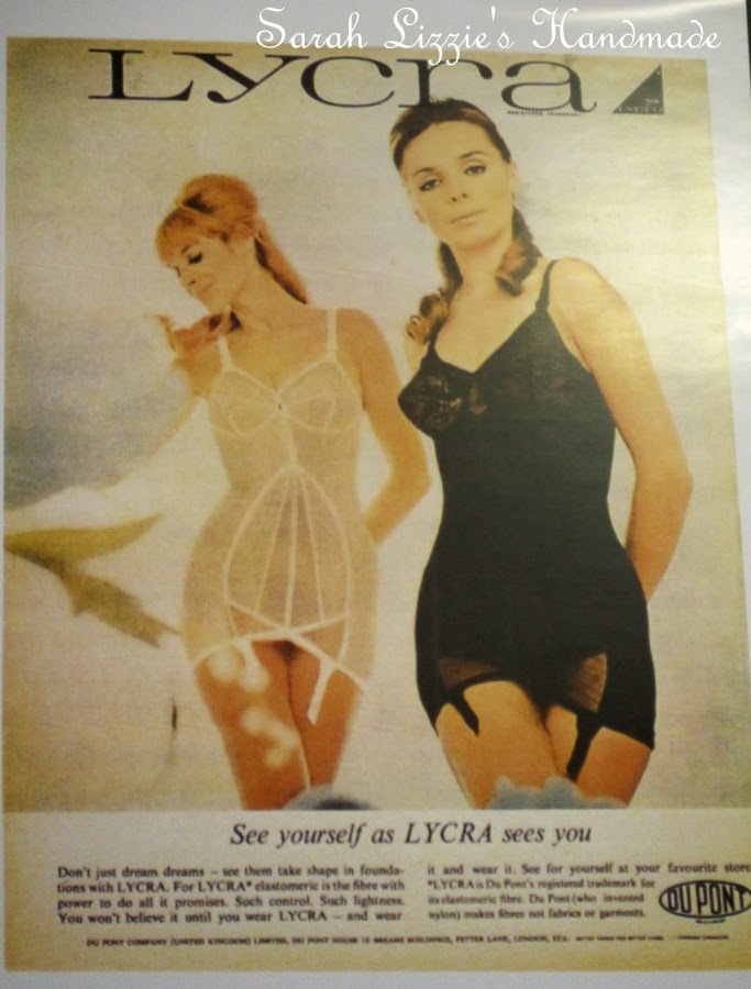 "Don't just dream dreams - see them take shape in foundations with LYCRA. For LYCRA elastomeric is the fibre with power to do all it promises. Such control. Such lightness. You won't believe it until you wear LYCRA....and wear it and wear it......." REALLY???