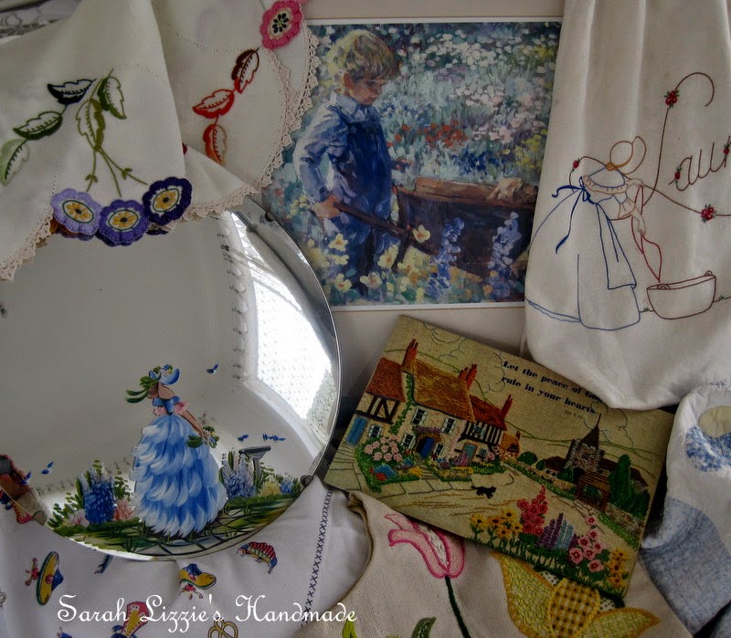 When a sense of decorum and an air of refinement had returned, I continued my stroll through the ages, having a bo peep at handbags, purses, sewing paraphernalia, makeup compacts, gloves, kitchenalia, hankies, embroidered lovelies....the list goes on and on....so much to see, so much to oooh and aahhh over.