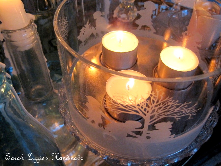This cute tea light candle holder is the inspiration for my lampshade cover. I love the whimsical silhouettes of children intermittently placed around the glass. It is gorgeous when alight with flickering tea lights.