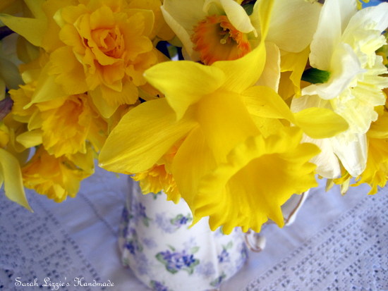 Hexagon after hexagon, gently swinging in the breeze. Don't they look pretty with the daffodils gracing the background.