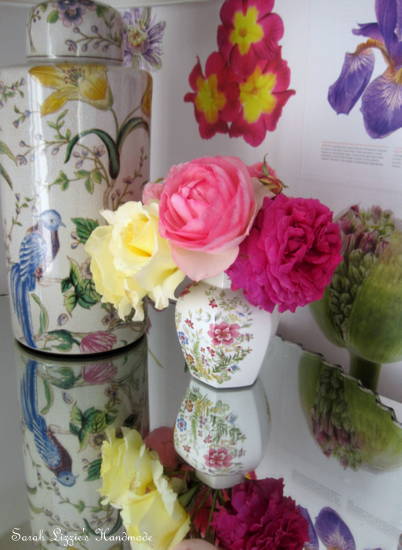 The sweet birdie and flowers camouflage perfectly with my flower-filled feature wall.