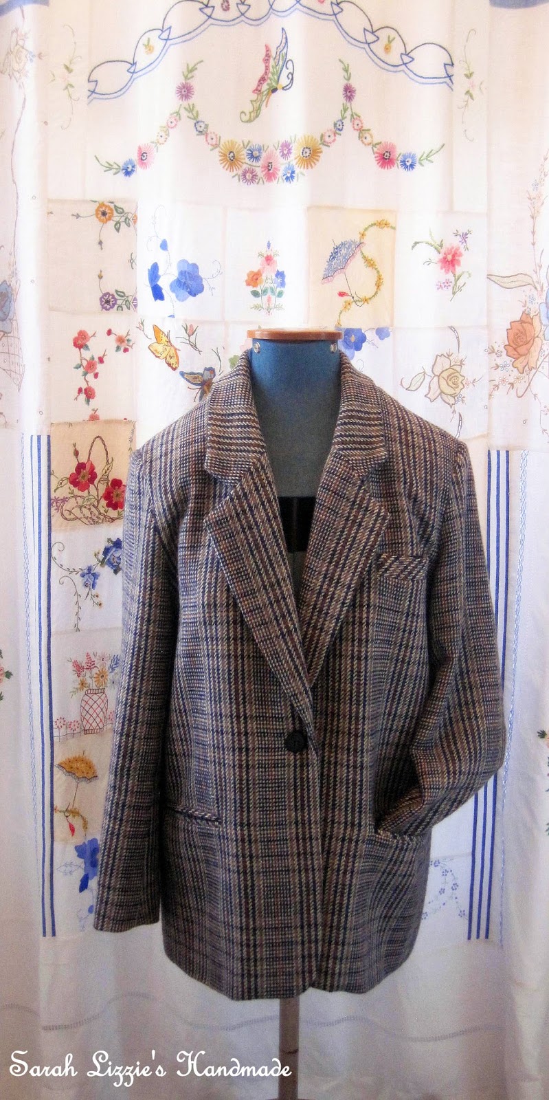 I also thought about embroidering a vine of flowers and leaves trailing down the right front, but again, decided against it. I decided just the lapels and the pockets adorned with needle points would be the way to go. I have a few more jackets waiting in the wings for me to work 'miracles' on......perhaps a spot of hand embroidery will be just the thing for these.