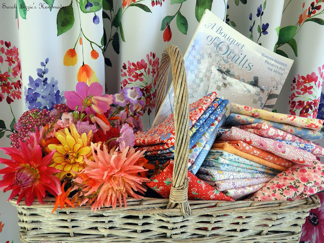 Hello all you lovely lovelies♥ 'Tis Sunday again. The day when I take it a little easier....the day of rest (well it is at least for me)..... the day for a little slow hand stitching. This week I have been enjoying a li'l bit of happy stitching. More fabric baskets and handles, which I chatted about here, have been stitched together. More playing with bright and happy reproduction prints.....and of course more playing with flowers cut from the garden.
